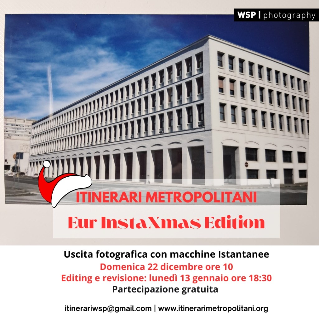 L’uscita “Eur InstaXmas Edition” si svolgerà all’Eur ed è un’uscita a tema “fotografia istantanea” applicata all’architettura e al paesaggio urbano.